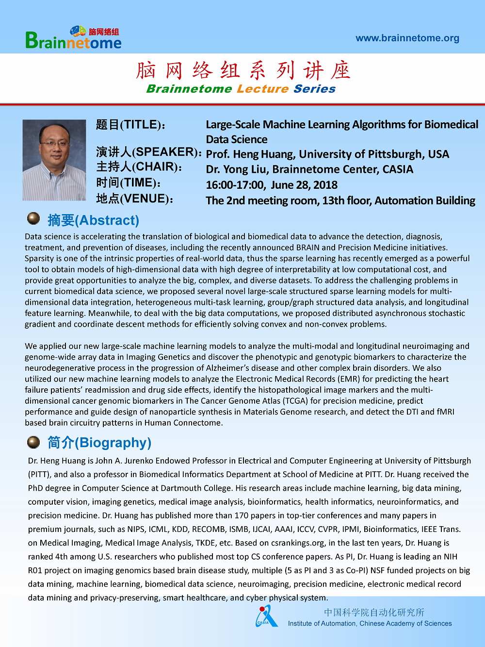 Speaker: Prof. Heng Huang, University of Pittsburgh, USA