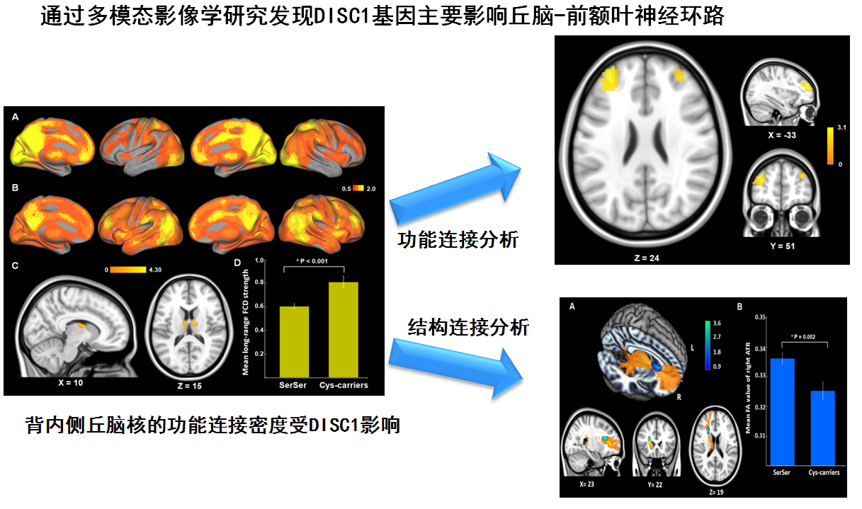 图 通过多模态影像学研究发现DISC1基因主要影像丘脑-前额叶神经环路