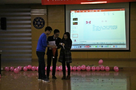 第一个活动环节是游戏——《演员的诞生》。两位同学表演主持人事先准备好的词语内容,由一名同学猜,猜对多的一队胜利。活动期间,有些队伍配合默契,猜词又准又快,临时组队的失去了最后的名次。值得一提的是,现场有些老师和学生虽然是第一次参加配合,但是配合却无比默契,并取得了第二名的好成绩。