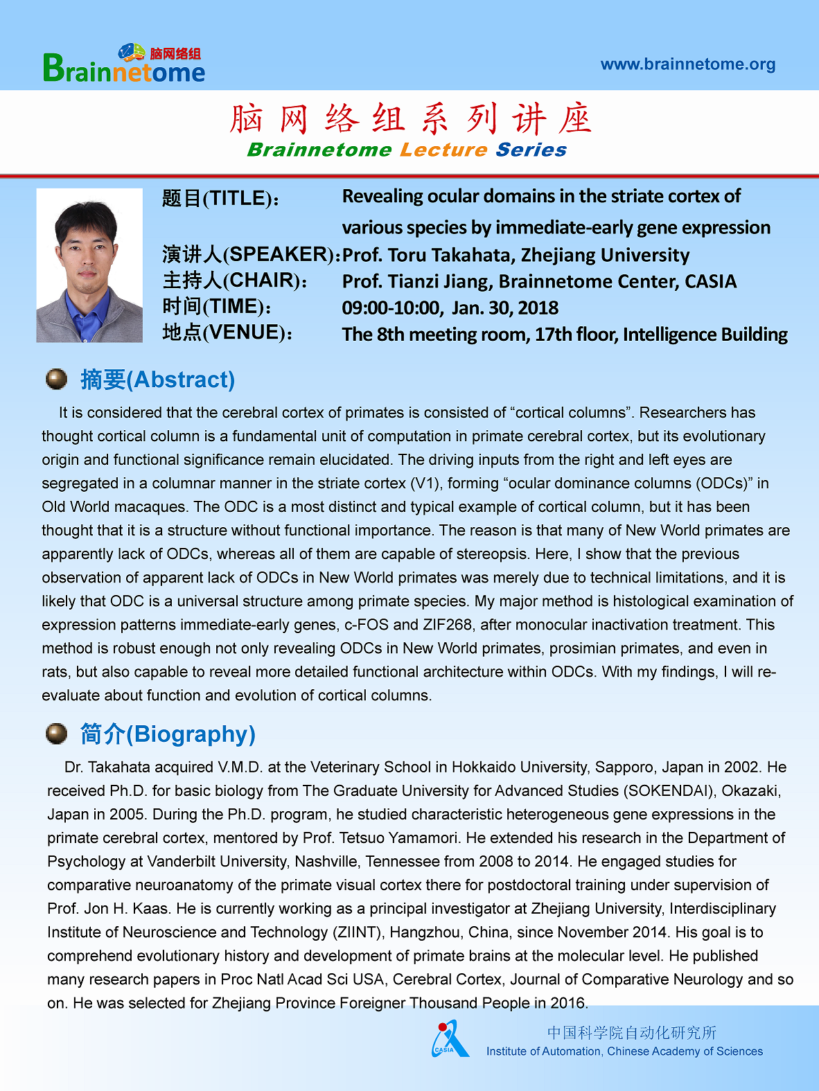 Title:Revealing ocular domains in the striate cortex of various species by immediate-early gene expression