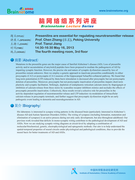 Prof. Zhang's Lecture -- Presenilins are essential for regulating neurotransmitter release