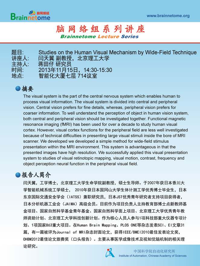 Prof. Yan's Lecture --Studies on the Human Visual Mechanism by Wide-Field Technique