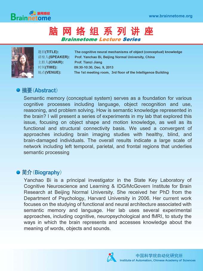 Prof. Bi's Lecture -- The cognitive neural mechanisms of object (conceptual) knowledge.