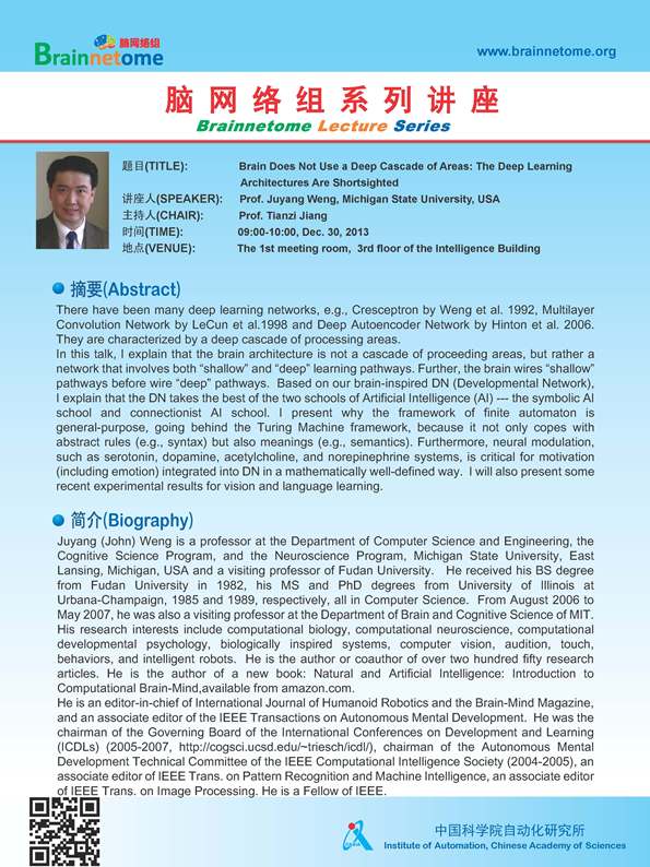 Speaker: Prof. Juyang Weng, Michigan State University, USA