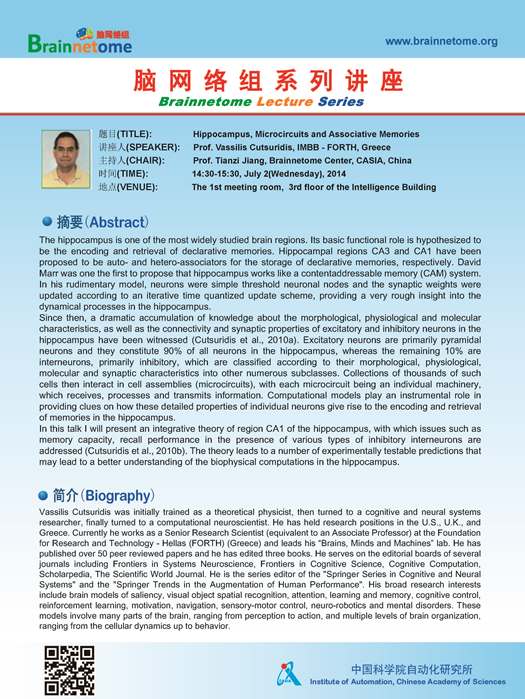 Speaker: Dr. Vassilis Cutsuridis, IMBB - FORTH, Greece
