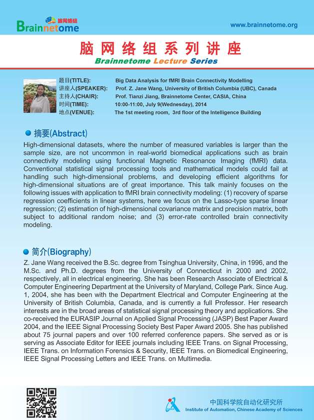 Dr. Wang' Lecture -- Big Data Analysis for fMRI Brain Connectivity Modelling