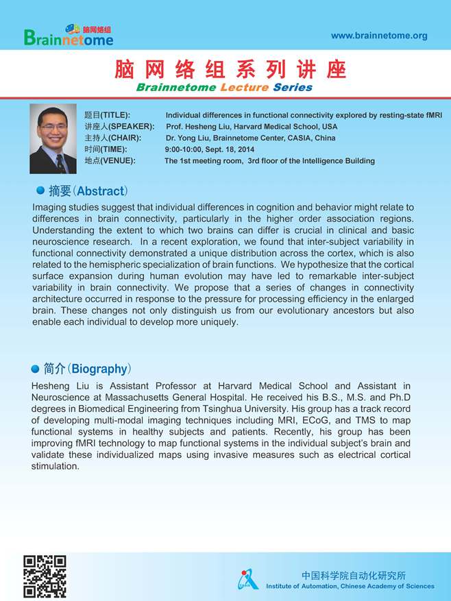 Speaker: Prof. Hesheng Liu, Harvard Medical School