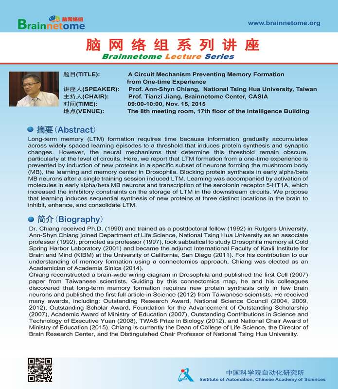 Professor Ann-Shyn Chiang's Lecture - A Circuit Mechanism Preventing Memory Formation from One-time Experience