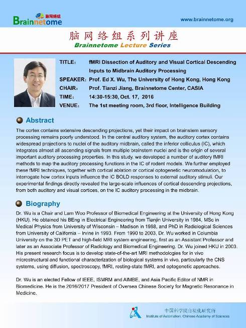 Prof. Ed X. Wu's Lecture - fMRI Dissection of Auditory and Visual Cortical Descending Inputs to Midbrain Auditory Processing