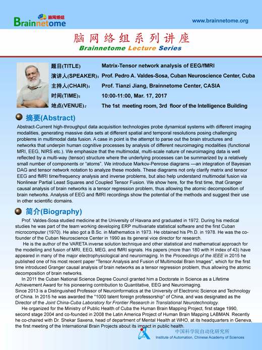 Prof. Prof. Pedro A. Valdes-Sosa's Lecture: Matrix-Tensor network analysis of EEG/fMRI