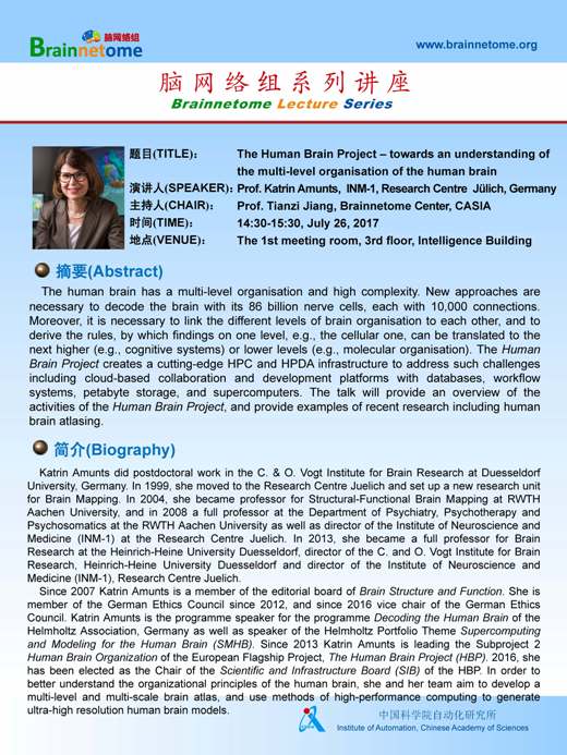 Speaker: Prof. Katrin Amunts, INM-1, Research Centre Jülich, Germany