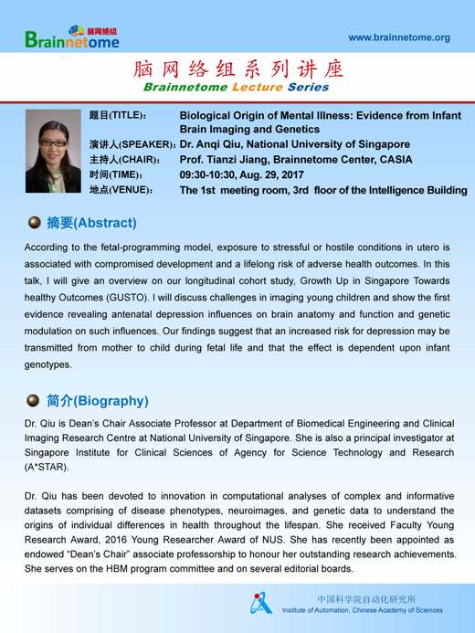 Dr. Anqi Qiu's Lecture: Biological Origin of Mental Illness: Evidence from Infant Brain Imaging and Genetics