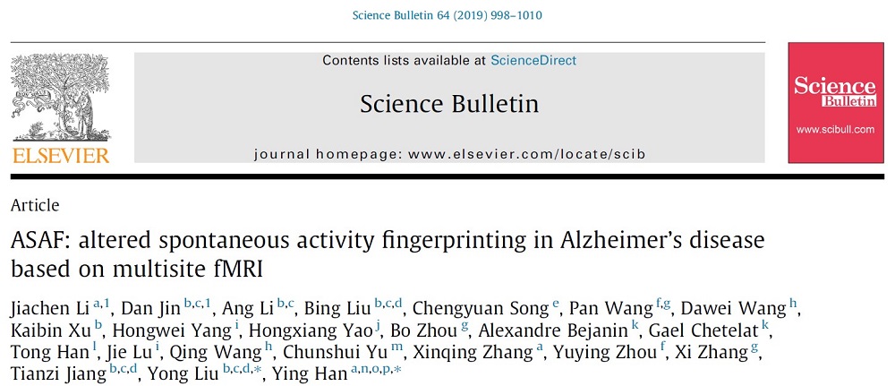 Article: ASAF: altered spontaneous activity fingerprinting in Alzheimer’s disease based on multisite fMRI